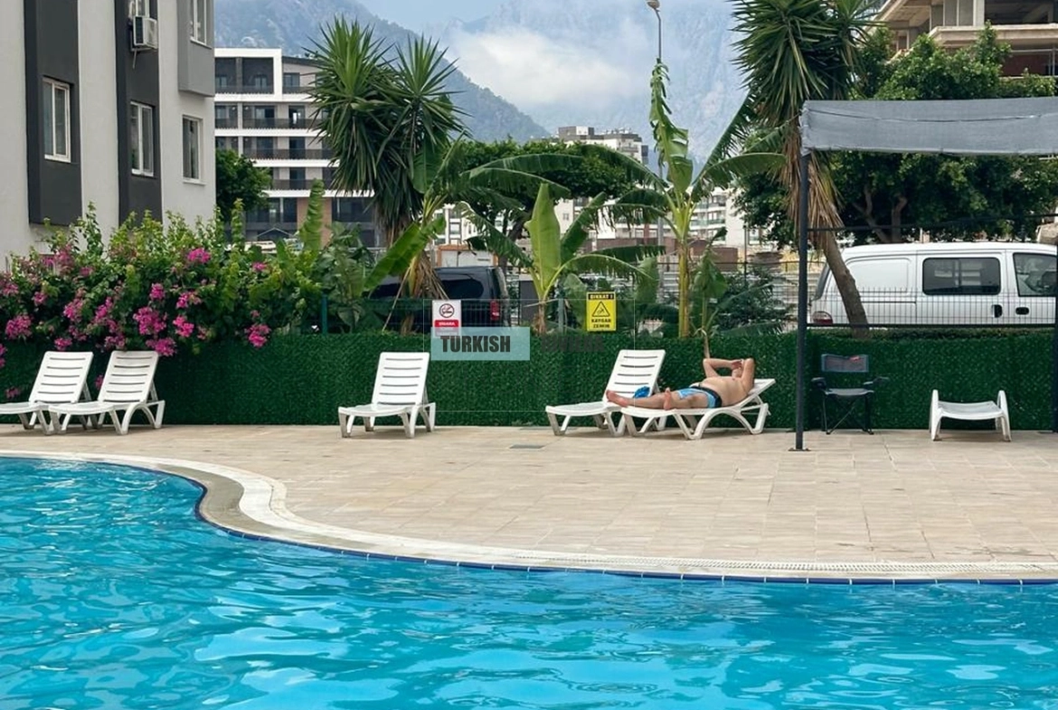 الشقة من غرفتين نوم وحمام و ، شرفتين، يوجد تراس، غرفة معيشة واسعة، مطبخ مفتوح ، و منطقة طعام. تم تجهيز المبنى السكني بمصعد و حديقة أنيقة و مرتبه، مواقف سيارات داخلية، أنظمة كاميرات أمنية على مدار الساعة طوال أيام الأسبوع. و يتواجد بالقرب من جميع المرافق والاحتياجات الخاصة والعامة مثل مطاعم، مقاهي، مواصلات، أسواق تجارية و غيرها.