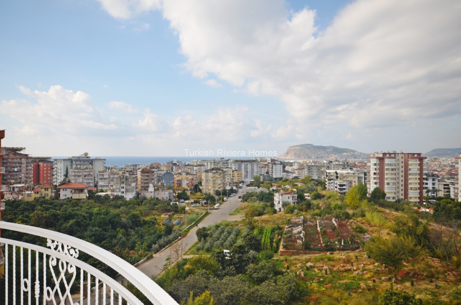 شقة من نوع 1+2 بإطلالات رائعة على البحر و قلعة ألانيا الذي يعود تاريخها إلى القرن الثالث عشر الميلادي، تحتوي الشقة على غرفتي نوم، حمامان، مطبخ مجهز بما في ذلك السلع البيضاء بمخطط مفتوح على غرفة المعيشة، تبلغ مساحتها 120 متر مربع بسعر 175,000 يورو. توجد الشقة في الطابق السابع ضمن مجمع راقي و جميل حيث يوفر العديد من الخدمات و الأنشطة الترفيهية منها: