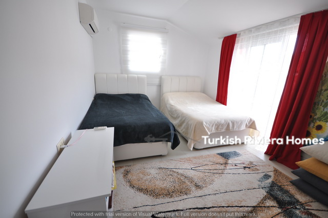 غرفة نوم مزدوجة مع شرفة فرنسية في نفس الطابق مع حمام عائلي. في الطابق الثاني يتوفر غرفتي نوم مزدوجتين مع حمامات داخلية وخزائن ملابس. من غرفة النوم الثانية يمكن الوصول إلى تراس السطح الجميل الذي يمكن استخدامه لحمامات الشمس أو الاسترخاء.