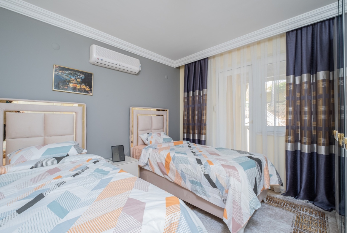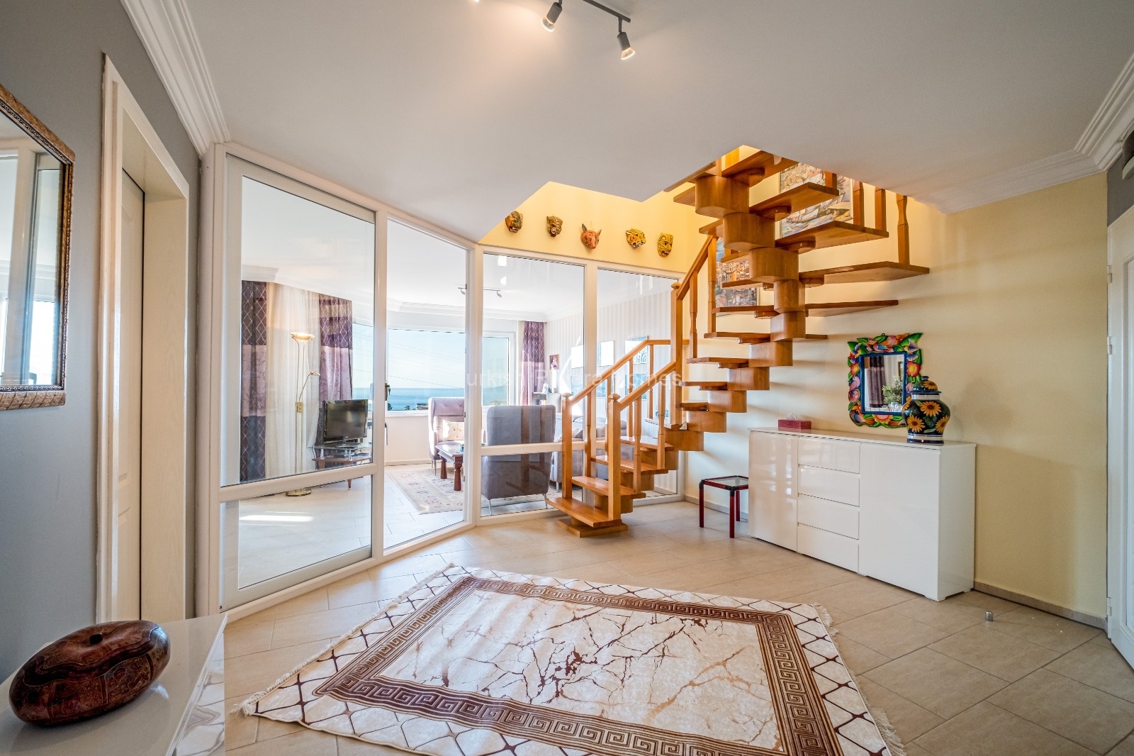 شقة دوبلكس رائعة بسعر و موقع مثالي، لها إطلالة خلابة على البحر و الجبال. تباع الشقة مؤثثة بالكامل، و تحتوي على ثلاث غرف نوم، حمامان، 2 مرحاض، شرفة، مطبخ منفصل، غرفة معيشة إضافة إلى منطقة طعام. تبلغ مساحتها 145 متر مربع بسعر 195,000 يورو فقط. فرصة رائعة لتحقيق حلمك في شراء منزل للإقامة فيه أو للإستثمار فهذه الشقة هي الأمثل. توجد ضمن مجمع راقي يوفر لسكانه حمام سباحة و حديقة منسقة جميلة. تقع الشقة في منطقة جميلة تسمى كارغيجاك التي تعد من إحدى المناطق الهادئة و الجميلة في ألانيا. كما تتميز بقربها من جميع المرافق التي قد يحتاجها الشخص بشكل يومي مثل: الماركت، المطاعم، المقاهي، البنوك، المستشفيات و غيرها.