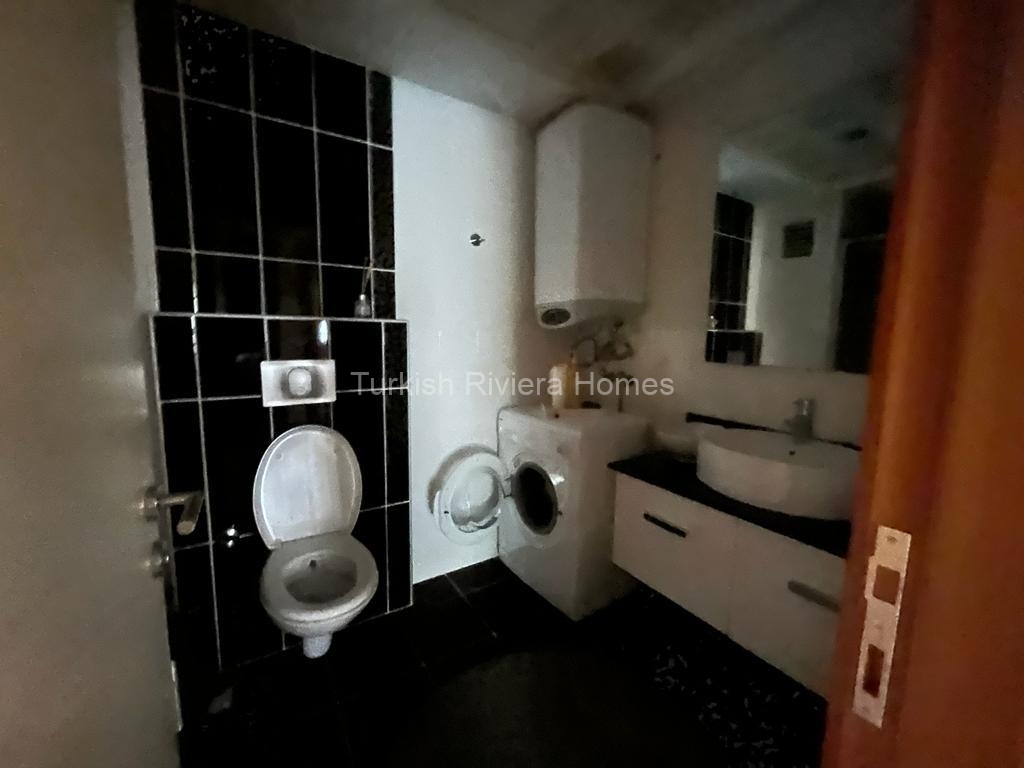 شقة للبيع في أنطاليا بها أنظمة المنزل الذكي، أدوات المطبخ، ستائر كهربائية، تواليت، إضاءة سبوت و ليد، فيديو انتركوم، قاعدة جرانيت في المطبخ و الصالة، ورق حائط، و باب فولاذي.