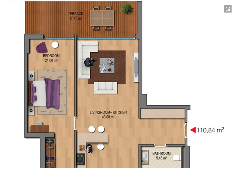 كل شقة تحتوي علي شرفة وتم تصميم الشقق ان تكون شرحة واسعة مع نوافذ الكبيرة حتي يمر ضوة شمس بكل سهولة في داخل المنزل