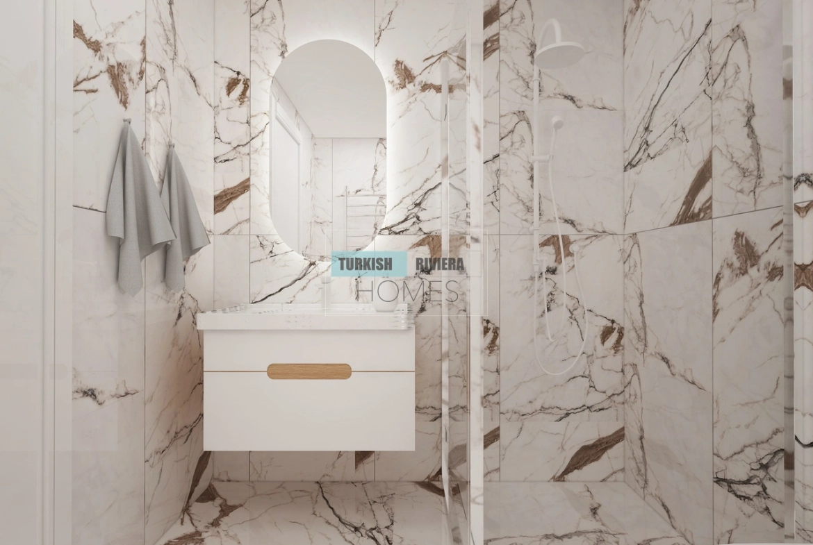 تتميز التصميمات الداخلية بعناصر عصرية، تجمع بين الألوان الهادئة والتشطيبات الفاخرة والإضاءة الطبيعية التي تعزز الشعور بالرحابة. تشمل كل شقة غرفتا نوم مريحتان، مثاليتان للعائلات أو الضيوف و حمامان عصريان مجهزان بمواد عالية الجودة. إضافة إلى غرفة معيشة واسعة، مثالية للاسترخاء أو استقبال الضيوف. المطبخ مجهز بالكامل بأجهزة حديثة. تتوفر الشقق على ديكورات داخلية مفروشة بالكامل بلمسات أنيقة وتفاصيل ذكية.