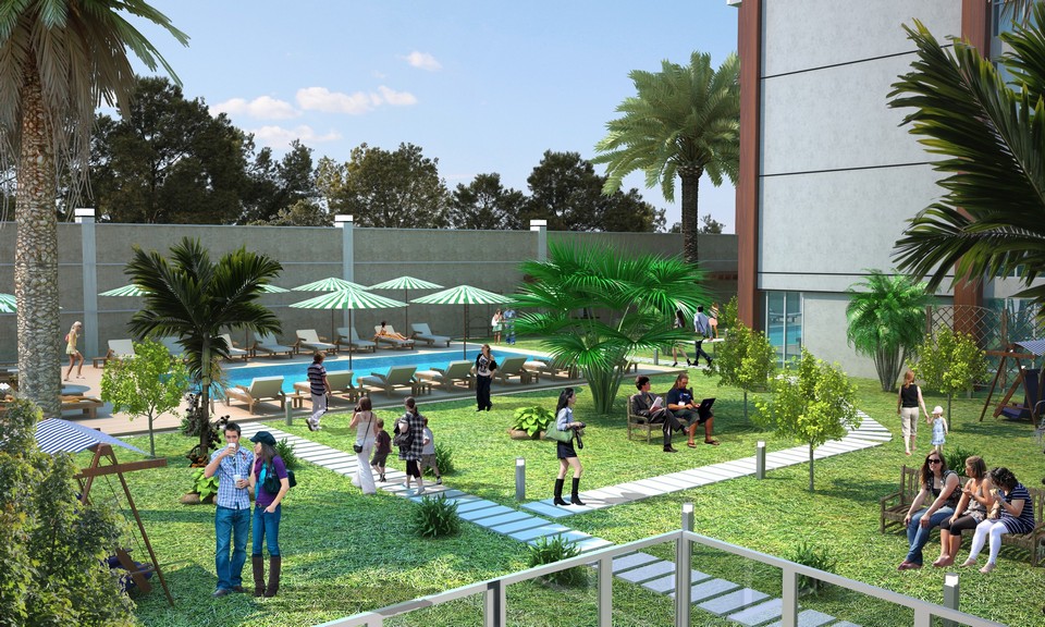 يوجد منطقة حول المسبح للإستمتاع بأشعة الشمس.