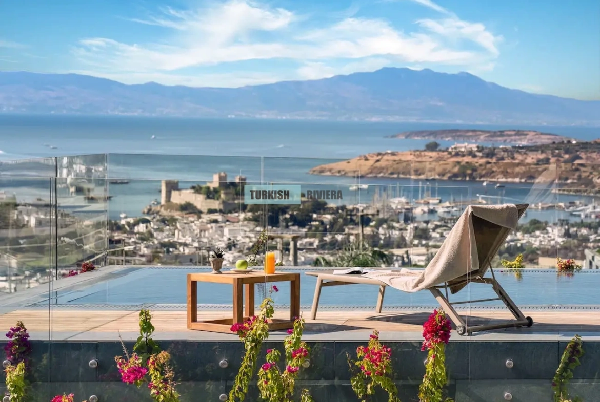 تُوفر النوافذ إطلالات خلابة على البحر وقلعة بودروم العريقة.