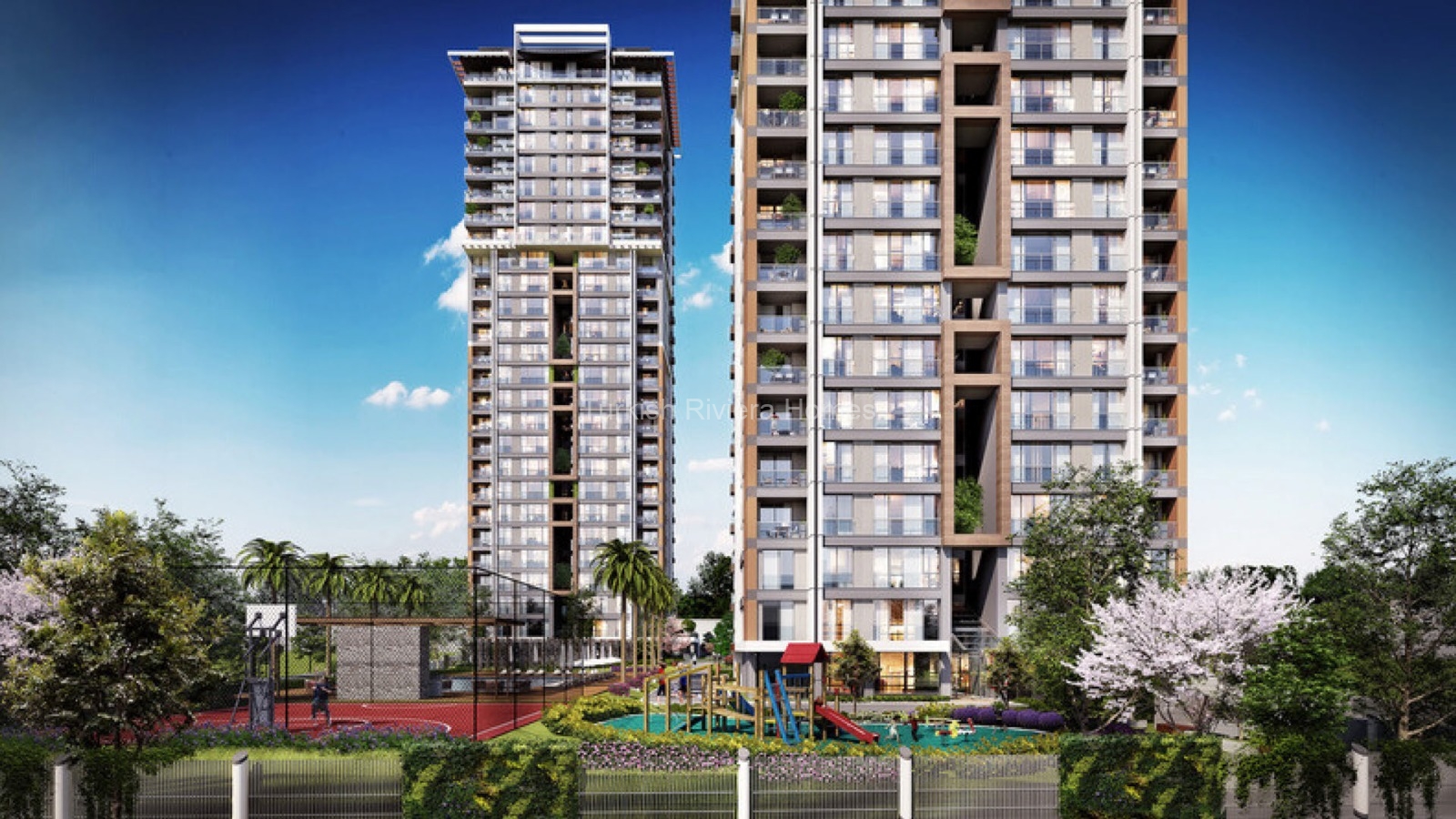 المجمع يضم في مجمله 117 وحدة مبنية على قطعة أرض بمساحة 3200 متر مربع، مع مجموعة كاملة من المرافق و الخدمات العامة و الاجتماعية بما في لك حدائق ذات مناظر طبيعية للجلوس في الخارج، و مسبح كبير، صالة رياطية لممارسة التمارين الرياضية، مساحات مخصصة للأطفال.
