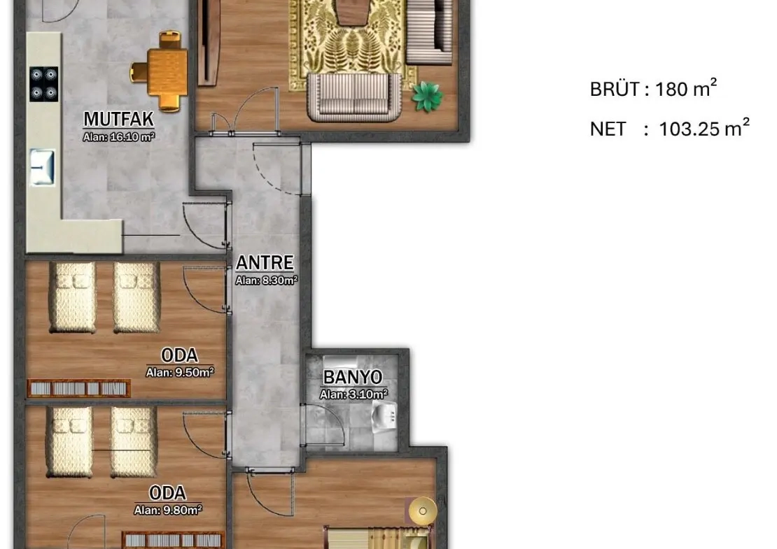 شقق غرفتين نوم و غرفة معيشة بمساحات تبدأ من  140 متر مربع بأسعار تبتدئ من 250.000 دولار