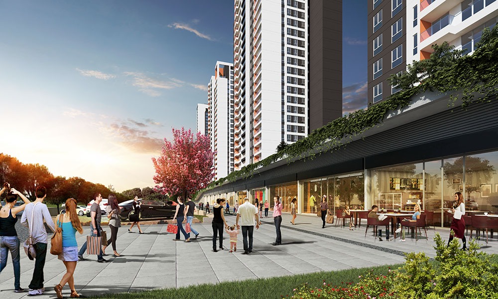 يوجد ضمن هذا المشروع اكثر من 40 وحدة تجارية سيتم استخدامهم كسوبرماركت، محلات، محلات موضة ، محلات البسة وغيرها الكثير – مما نوفر للمقيمين بخيارات تسوق ممتازة مباشرة امام منزلك . 5,000 م من المساحة تم اعطائها للمناطق التجارية