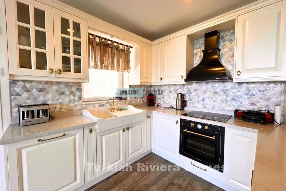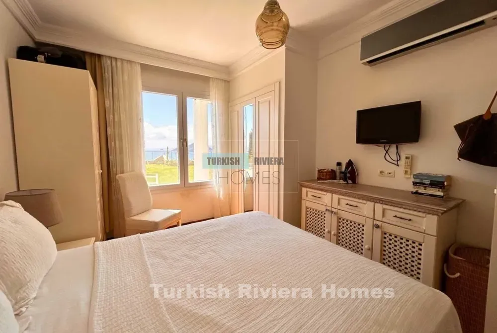 يتميز المسكن بغرفة معيشة واسعة مع مدفأة، مما يخلق جوًا دافئًا وجذابًا. كما توفر غرفة النوم الرئيسية والحديقة إطلالات خلابة على البحر، لتستيقظ على أنغام بحر إيجة كل صباح. يضم المسكن ثلاث غرف نوم مزدوجة، إحداها بحمام داخلي، وحمام مشترك إضافي، مما يضمن الخصوصية والراحة. تُكمل الحديقة ذات المناظر الطبيعية تجربة المعيشة الخارجية، مما يخلق جوًا هادئًا للاسترخاء.