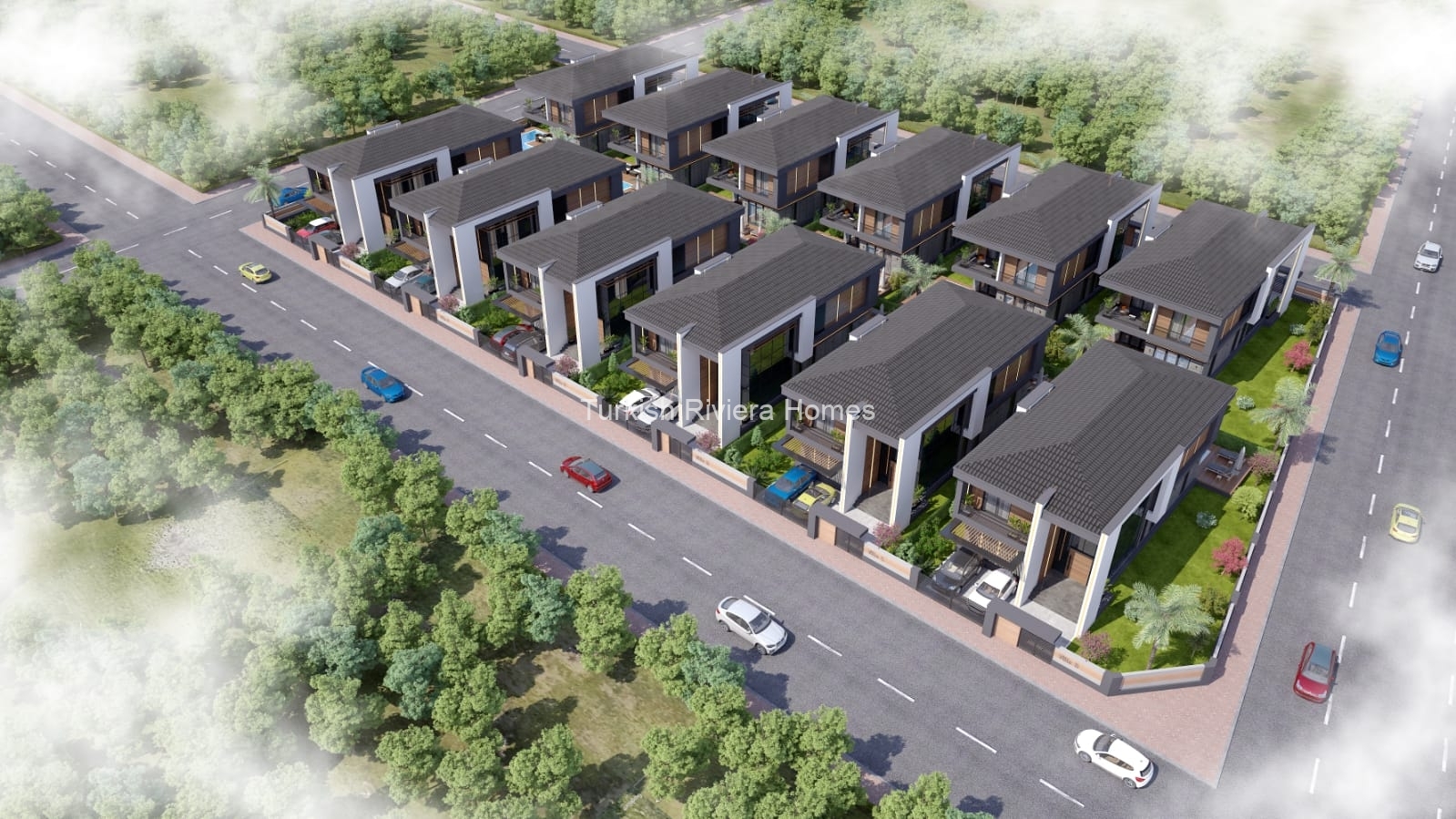 يقع مشروعنا في منطقة دوشمالتي في أنطاليا. و يتكون المشروع من 12 فيلا على مساحة إجمالية قدرها 5545 متر مربع. تبلغ مساحة كل فيلا 320 مترًا مربعًا وتحتوي أيضًا على مسبح بمساحة 31 مترًا مربعًا. الفلل لدينا من نوع 1 + 4، و تحتوي على غرفة معيشة، مطبخ منفصل، غرفة ضيوف (مع حمام)، حمام آخر، غرفة تقنية في الطابق الأرضي. في الطابق العلوي، يوجد ثلاث غرف ضيوف، 3 حمامات داخلية، غرفتي تغيير ملابس، حمام تركي، غرفة غسيل، شرفة، و تراس.