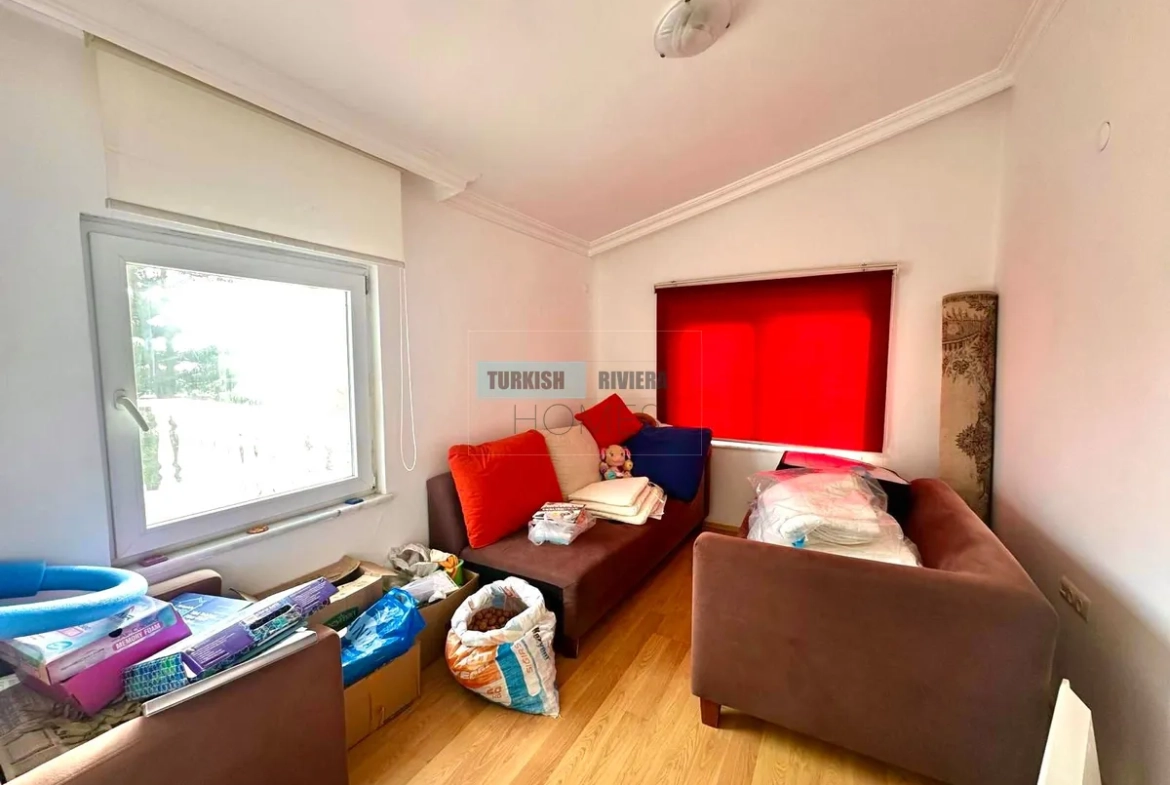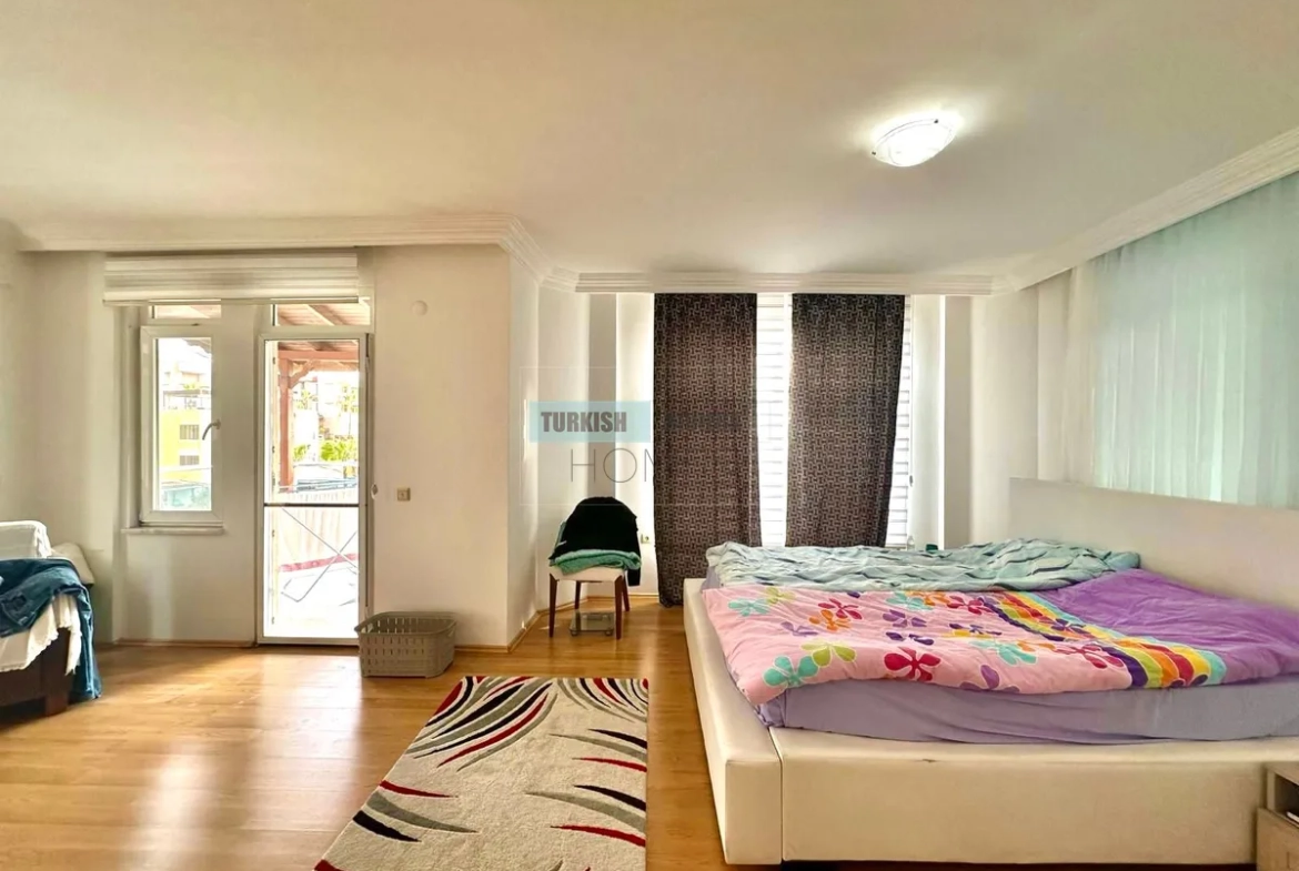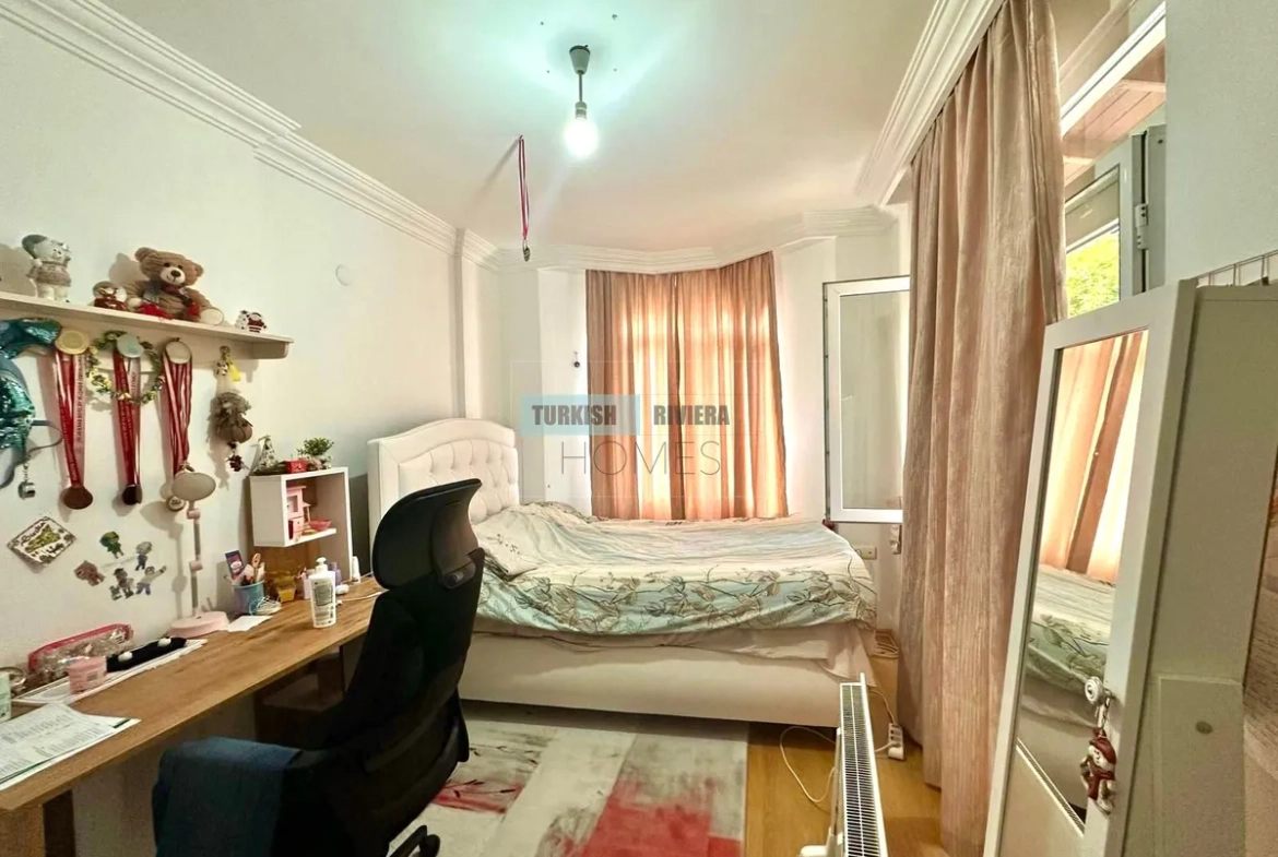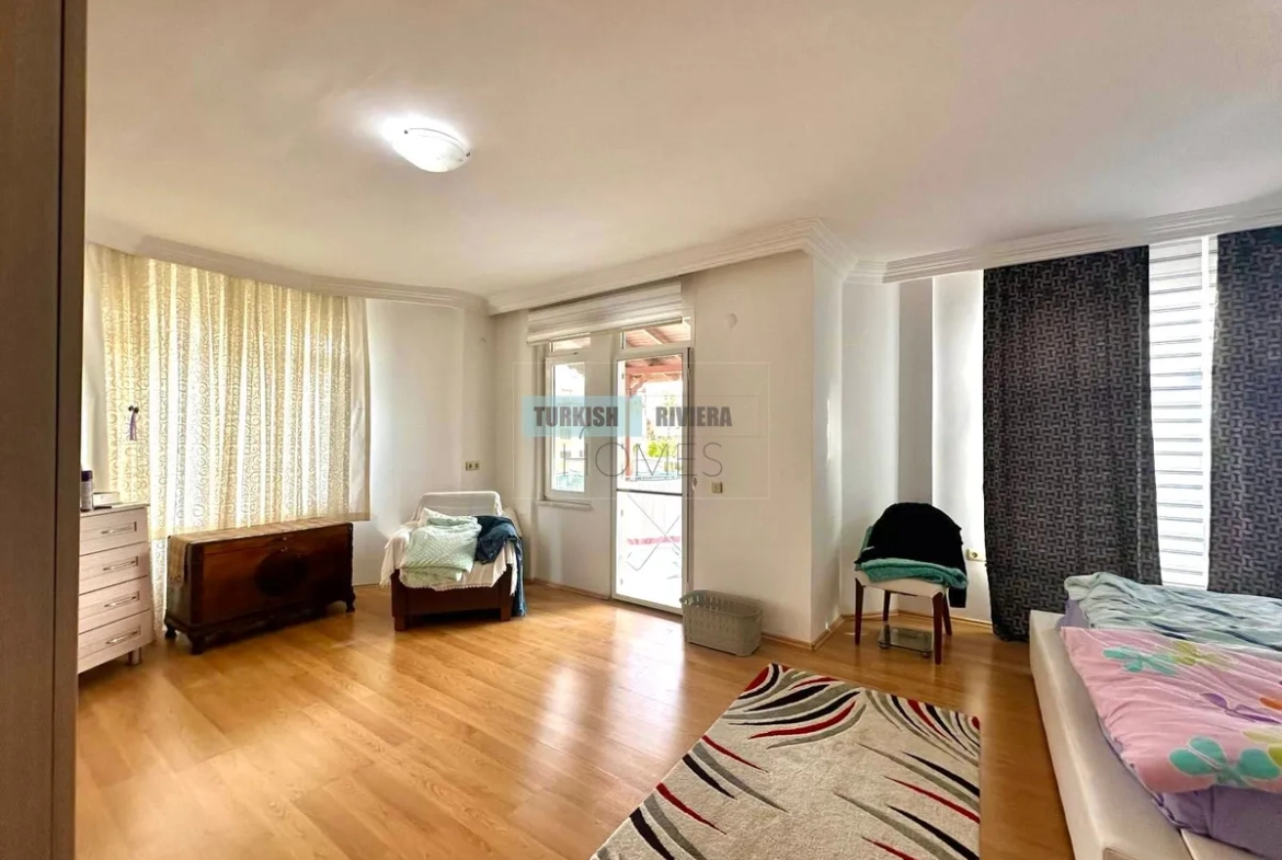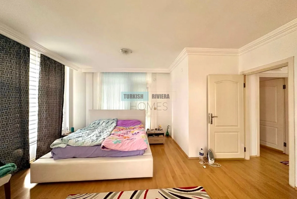 ثلاث غرف نوم هادئة، كل منها مزودة بمساحة تخزين واسعة ومنفذ إلى الحديقة أو الشرفة، تضمن لكل فرد من أفراد العائلة ملاذه الخاص. حمامان أنيقان يخدمان المنزل، مجهزان بتجهيزات عصرية فاخرة لراحة واسترخاء تام. كل غرفة تُمثل نقطة انطلاق مثالية لإطلالة بانورامية على مدينة ألانيا وساحلها.