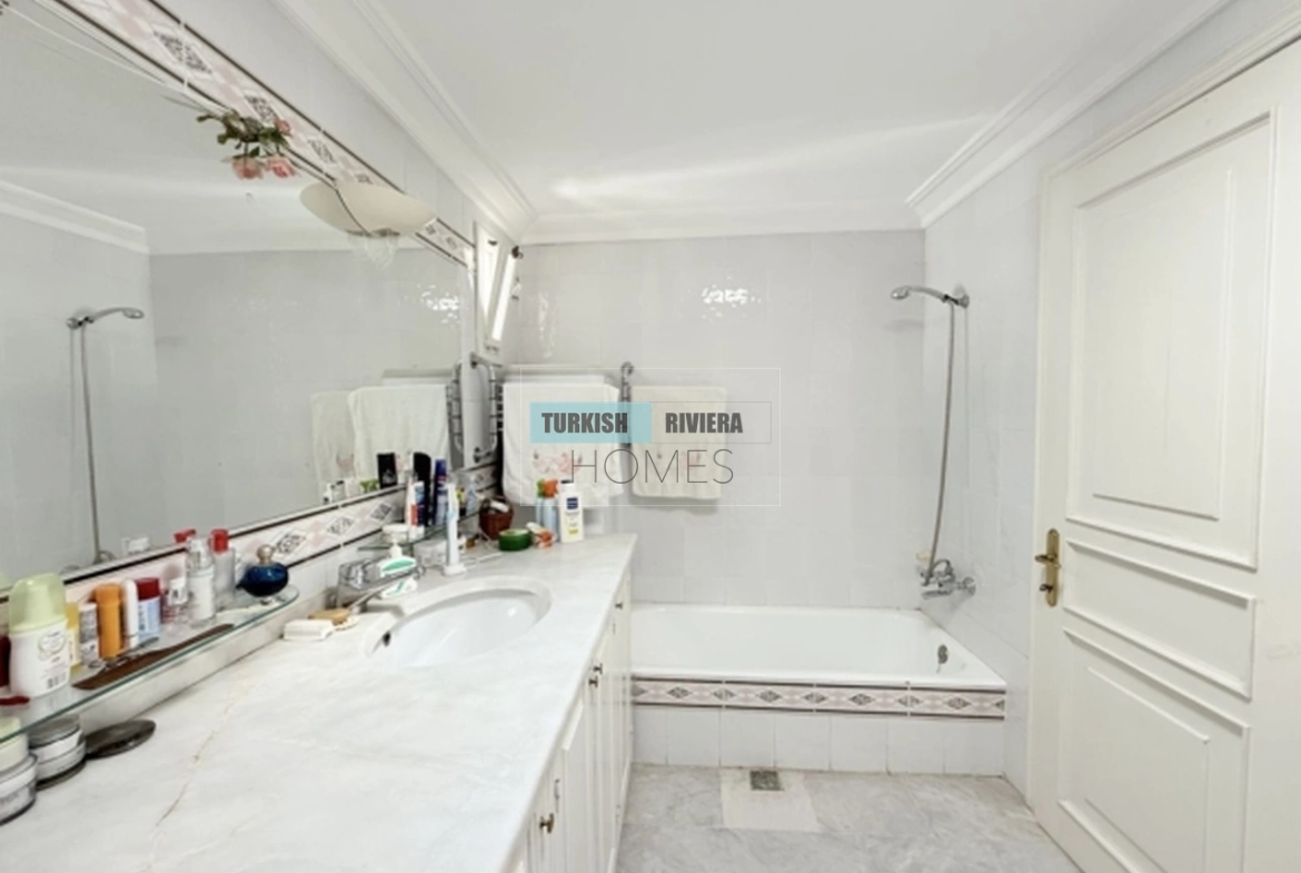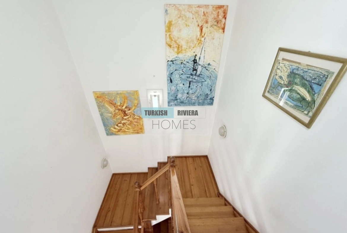 يحيط بالمسبح الخاص في الطابق الأوسط شرفة للتشمس ودُش خارجي، مما يجعله مثاليًا للاستمتاع بأيام بودروم الدافئة. في الداخل، تضمن المدفأة ونظام التدفئة المركزية راحةً طوال العام، بينما يُضفي موقف السيارات الداخلي مزيدًا من الراحة. الفيلا مفروشة بالكامل وجاهزة للسكن الفوري.