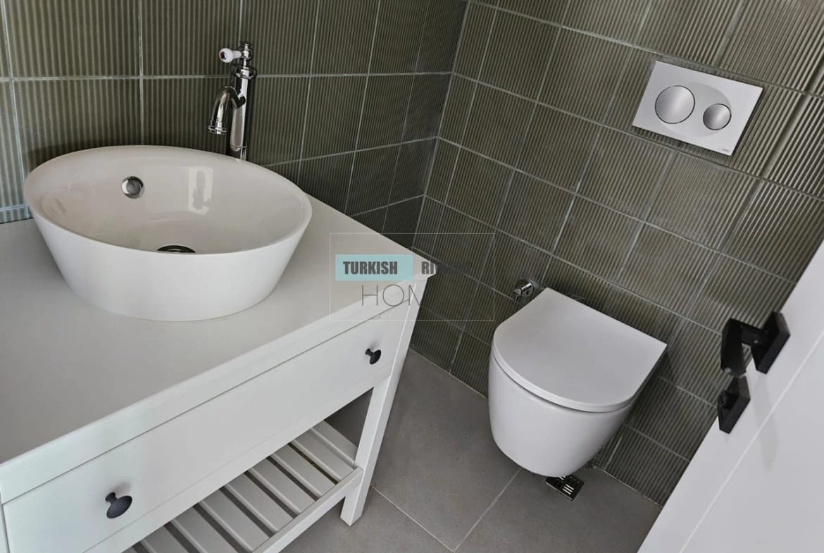 اصعد الدرج لاكتشاف غرفتي نوم مريحتين، مصممتين كملاذ هادئ بعد أيام من استكشاف مسارات كيمر الخضراء أو شواطئها النابضة بالحياة. الحمام مُجهّز بأناقة، مُكمّلاً الأجواء العصرية للفيلا.