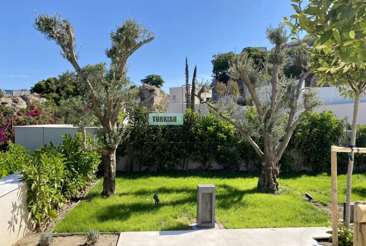 في الخارج، يمتد مسبح خاص بمساحة 45 مترًا مربعًا نحو الأفق، يعكس السماء والبحر على سطحه. توفر التراسات الواسعة مساحات متعددة للاسترخاء وتناول الطعام، من تراسات مشمسة بجانب المسبح إلى زوايا مظللة مثالية للقراءة أو الاستمتاع بمشروب هادئ. صُممت الحديقة المنسقة بعناية لتحيط بالمناظر دون أن تعيقها، مما يخلق حدودًا خضراء ناعمة تتباين بجمال مع زرقة البحر العميقة. داخل المجمع المسوّر، يمكن للمقيمين أيضًا الاستمتاع بمرافق ترفيهية مشتركة، بما في ذلك ملاعب كرة السلة وكرة القدم والتنس، مما يوفر المزيد من الطرق لقضاء أيام مليئة بالنشاط والحيوية دون مغادرة المنزل.