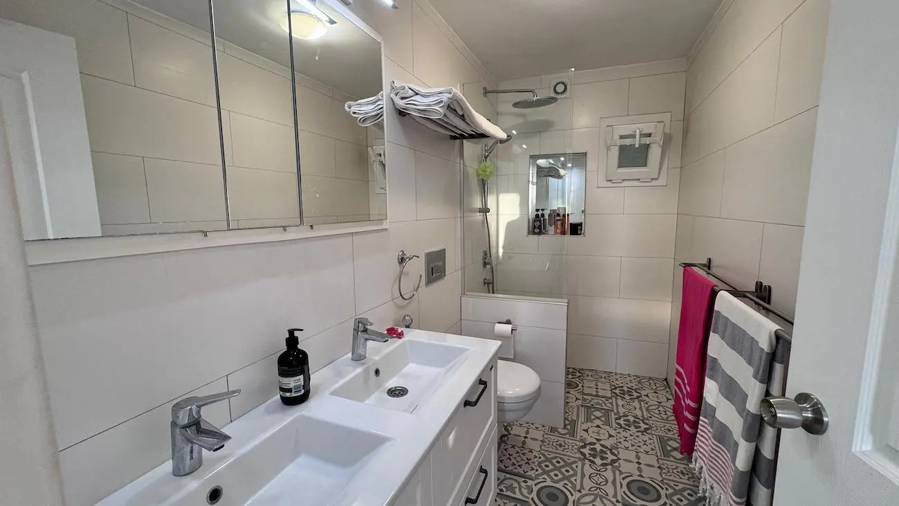 في المجموع، يحتوي المنزل على خمس غرف نوم وأكثر من مساحة كافية في الداخل لنوم عائلة يصل عددها إلى عشرة أشخاص في وقت واحد. تحتوي غرفة النوم الرئيسية على خزانة ملابس خاصة بها وحمام داخلي خاص. هناك ثلاثة حمامات في المجموع. تتمتع الشرفات والتراسات الملحقة بإطلالات شاملة رائعة على البحر وغروب الشمس.