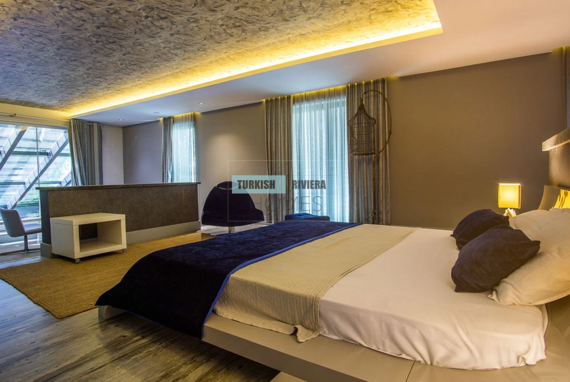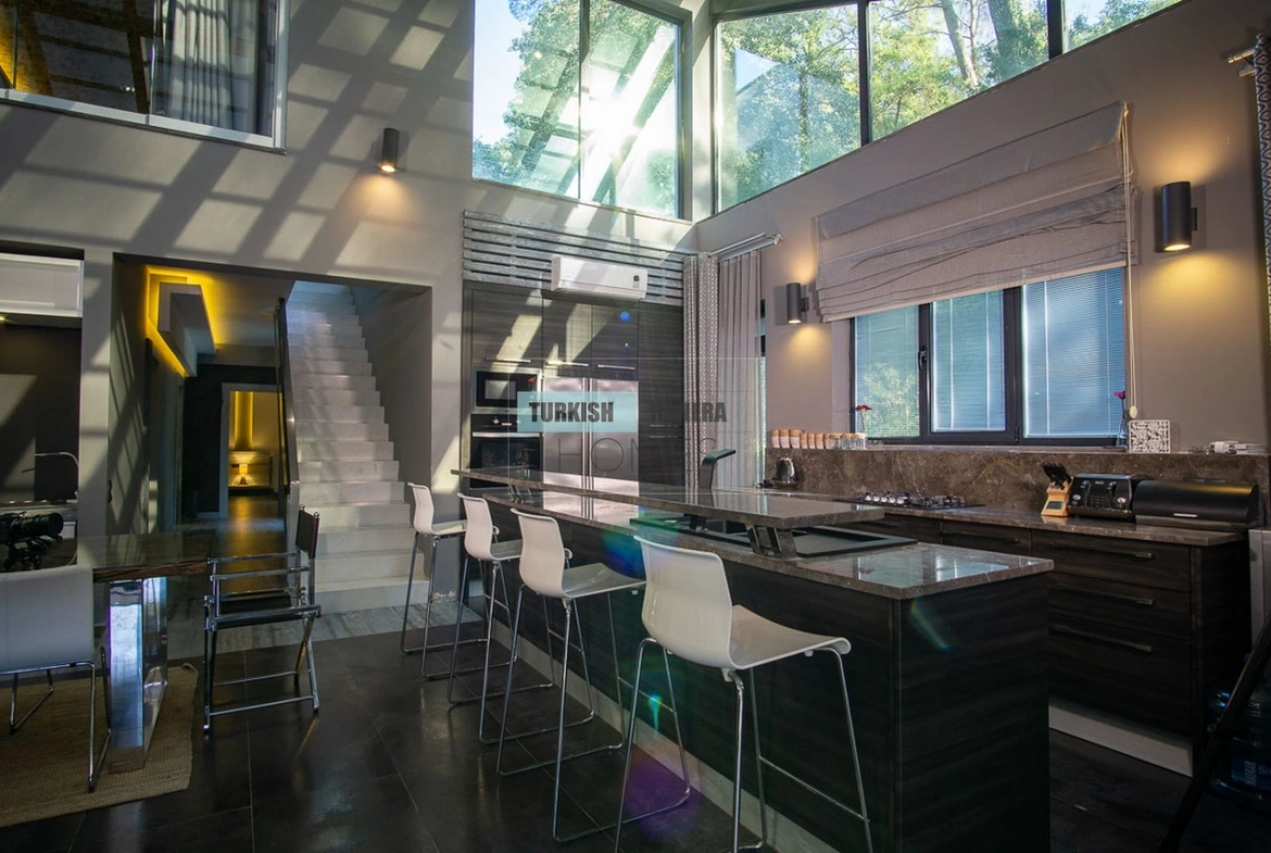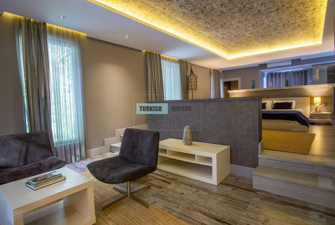 يندمج هذا العقار الفريد بشكل رائع مع محيطه الطبيعي ووسائل الراحة الحديثة، مما يجعله الحل الأمثل لقضاء عطلة عائلية والاستثمار العقاري في تركيا.