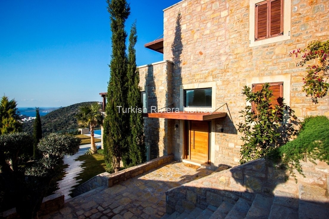 في الخارج ، يمتد المسبح المذهل الكبير من شرفة الفيلا باتجاه الحدائق والتلال ويطل على البحر ومرسى ياليكافاك. وجود مناطق كبيرة مشمسة وتراسات مظللة مع عريشة ودش حمام سباحة ودورة مياه وشرفة خارجية ومطبخ ومنطقة لتناول الطعام تحيط بمحيط المنزل والمسبح. تم تزيين الحدائق بشكل جميل وأشجار النخيل وأشجار الزيتون. تكثر المساحة والخصوصية.