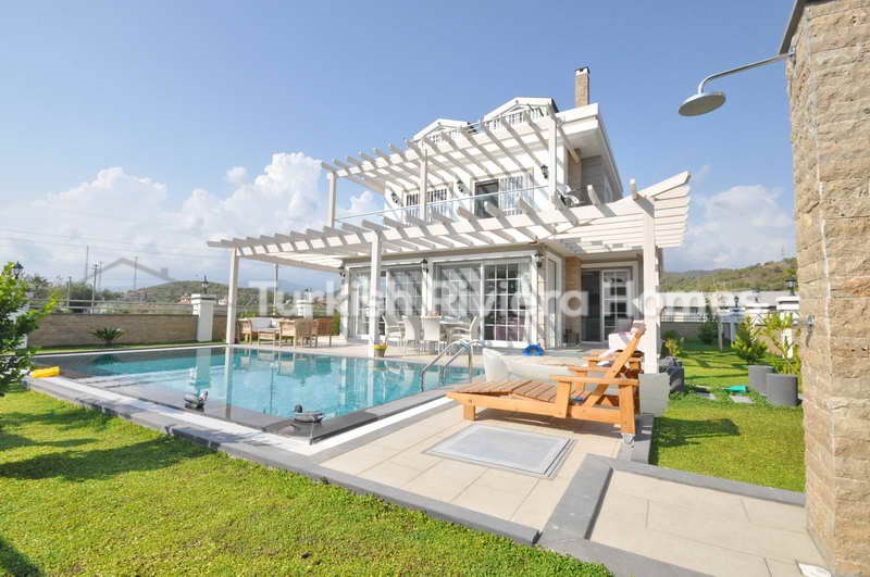تبعد الفيلا مسافة 10 دقائق فقط مشيا على الأقدام من الشاطئ، هذا المنزل الرائع والفريد المعروض للبيع في كاليس هو الخيار الأمثل لأولئك الذين يبحثون عن منازل عالية الجودة في مناطق سكنية مناسبة للإقامة فيها مع العائلة على مدار العام في فتحية