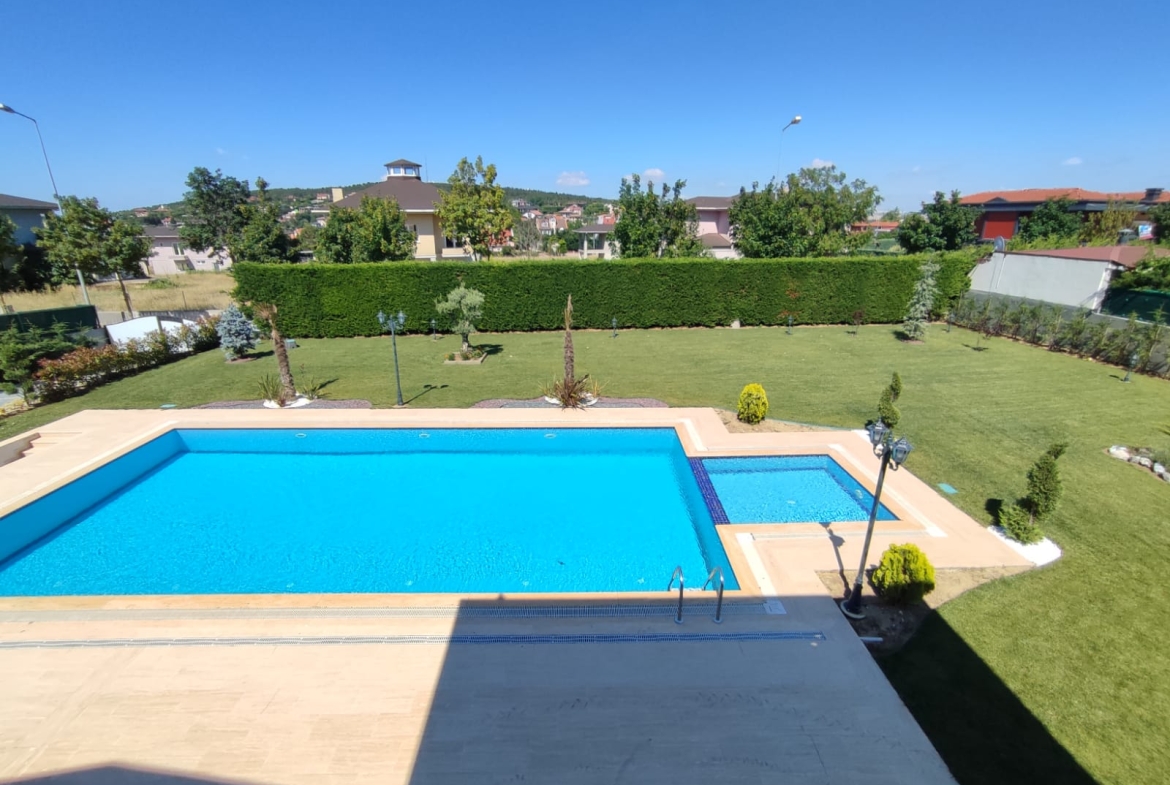 لا شك أن منطقة المسبح الخاص هي جوهرة هذا العقار. اخرج لتجد نفسك في واحة من الهدوء والسكينة. المسبح المتلألئ، المحاط بتراس شمسي واسع، يدعوك للاسترخاء والاستمتاع بدفء شمس إسطنبول. تُضفي المساحات الخضراء الوفيرة والأثاث الخارجي الموزع بشكل استراتيجي أجواءً مثالية لتناول الطعام في الهواء الطلق أو الاسترخاء بجانب المسبح.