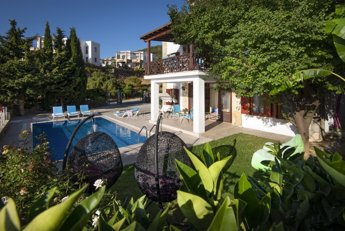 إنها فيلا مريحة منفصلة مكونة من 3 غرف نوم مع 3 غرف استحمام كبيرة الحجم، إحداها بحمام داخلي. المناظر الخلابة المطلة على بحر إيجه وحتى الجزر التركية الصغيرة والجزر اليونانية أبعد من ذلك هي مناظر خلابة وتوفر بعضًا من أفضل المناظر البحرية في المنطقة. من شرفة الاظلالة البحرية في الطابق الأول، وشرفة السطح في الطابق الثاني والحديقة الكبيرة مع حمام سباحة خاص، ستكون محظوظًا بما يكفي لمشاهدة أفضل غروب الشمس في شبه جزيرة بودروم. تحتوي هذه الفيلا المنفصلة على مناطق معيشة خارجية واسعة مع شرفة أرضية مغطاة مجاورة للمسبح الخاص المجهز بأثاث لتناول الطعام ومرافق للشواء لتناول العشاء في الهواء الطلق وحفلات غروب الشمس. توجد أيضًا منطقة أخرى لتناول الطعام على التراس الموجود على السطح والتي تحتوي على مطبخ صغير حتى تتمكن من الاسترخاء أثناء مشاهدة غروب الشمس أثناء تناول العشاء.