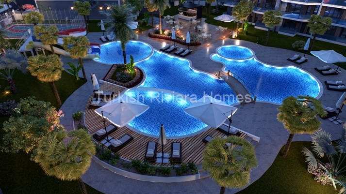 الشقق جميعها تعطيك لمحة كأنك في عطلة حسث أنها شقق فاخرة مع شرفات مريحة وكبيرة مطلة على المسابح و المساحات الخضراء.