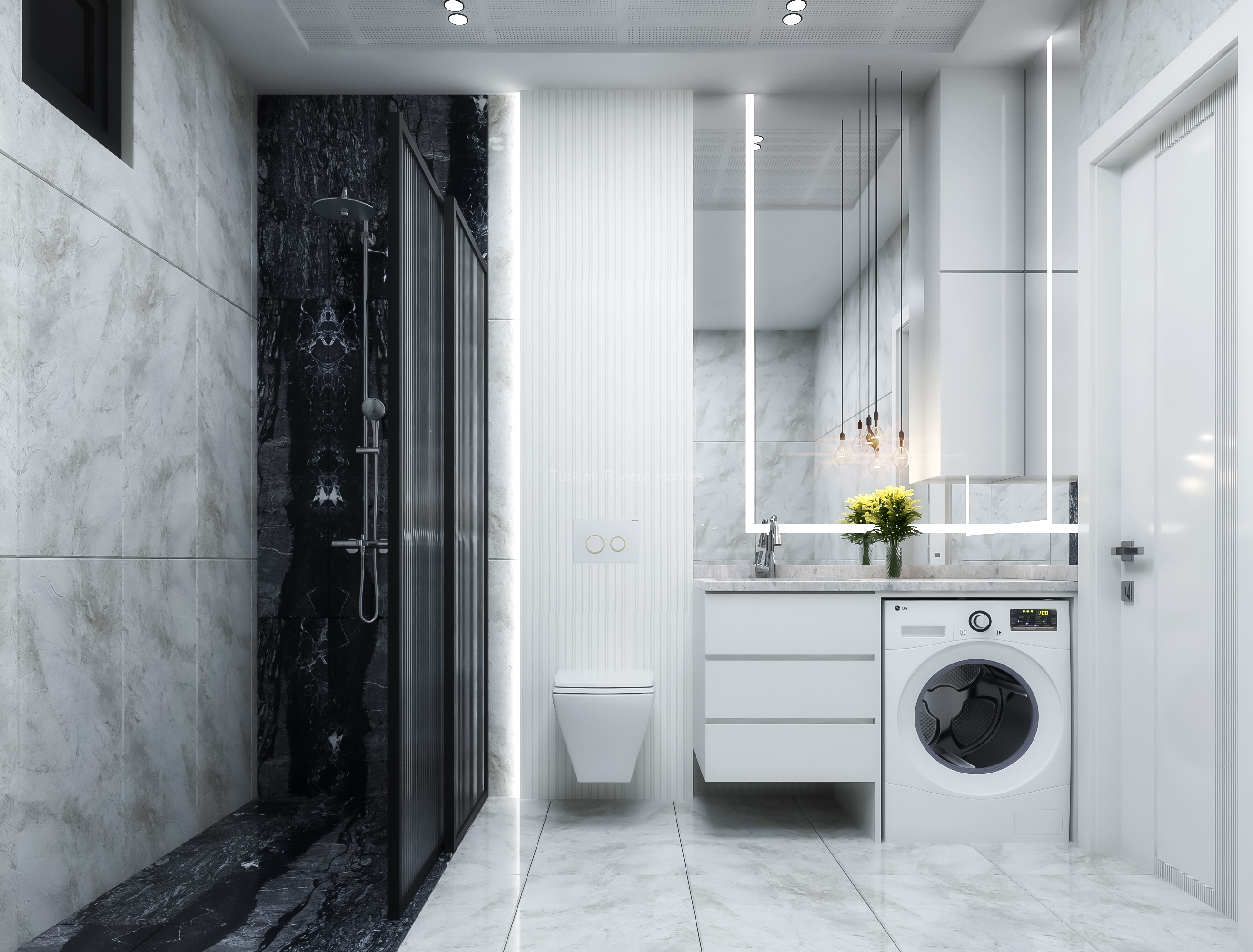 – سيراميك وحوض الغسيل من الدرجة الأولى، كبائن للأستحمام من الزجاج المقسى في جميع الحمامات.